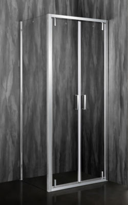 आधुनिक बाथरूम के लिए क्रोम प्रोफाइल के साथ स्टाइलिश शावर डोर